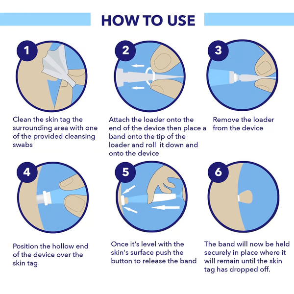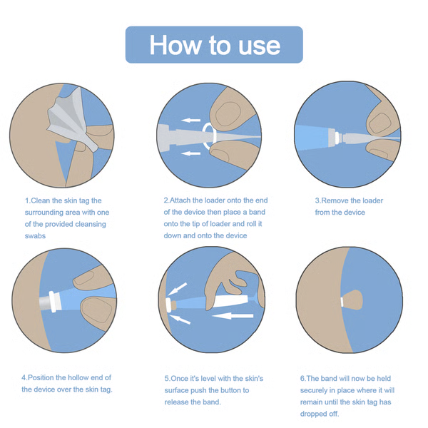 - Libérez la bande : Appuyez sur le bouton pour libérer la bande, qui maintiendra fermement l'excroissance cutanée jusqu'à ce qu'elle tombe.
