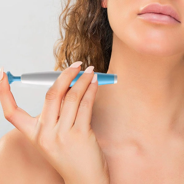 - Ciblez l'excroissance cutanée : Positionnez l'extrémité creuse de l'appareil sur l'excroissance cutanée, en vous assurant qu'elle est alignée avec la surface de la peau.
