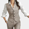 N'attendez plus ! Ajoutez l'ensemble 3 pièces pour femme avec pantalons, gilet et blazer à votre garde-robe et profitez de la combinaison parfaite d'élégance et de confort.