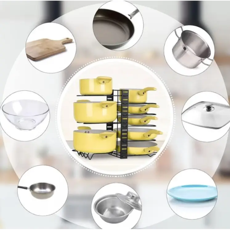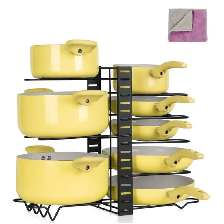 Fabriqué en fer durable et revêtu d'un traitement antirouille, notre organisateur de casseroles est conçu pour durer. De plus, il est facile à assembler, sans outils nécessaires.